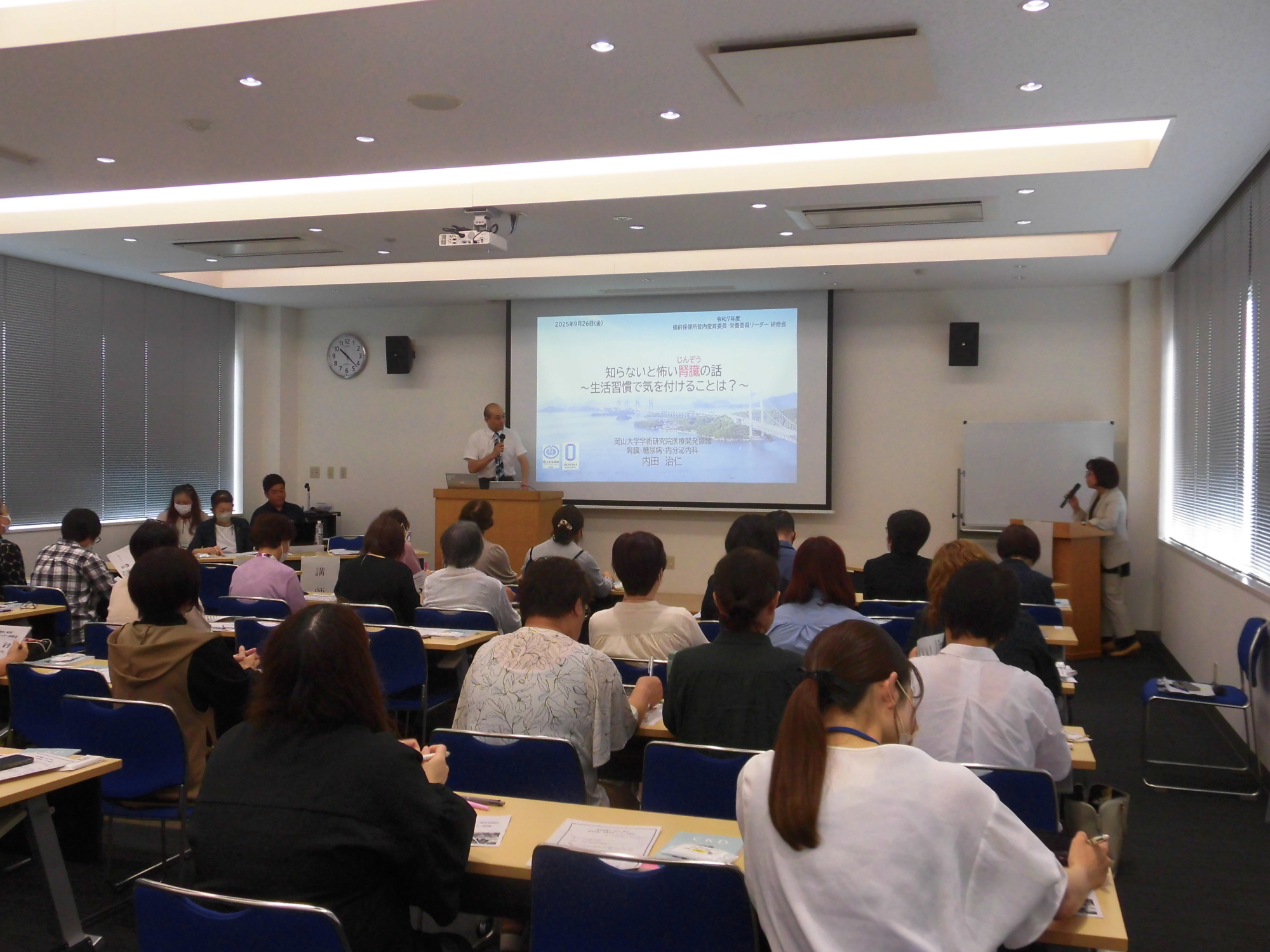岡山県の方々、岡山県内保健所や、各市町村で国民健康保険保健事業に携わる方とともに、約2時間熱心に研修を行いました。